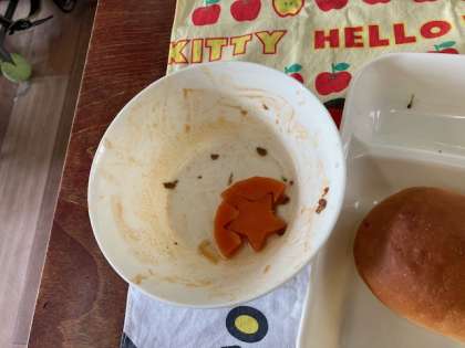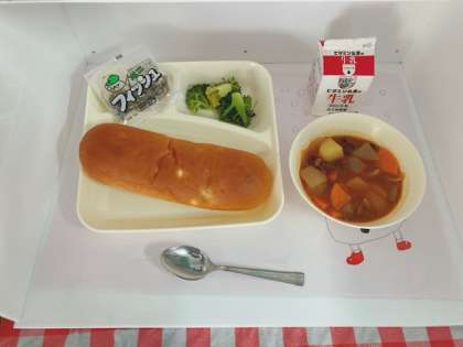 ビーフシチューには、星形のラッキーにんじんが入っていました☆型抜きをしたかけらのにんじんを見て、いつもと形のちがうにんじんがあることに気づいている子どもたちもいました!