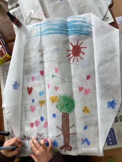 生活科の学習で、日本の昔遊びを学習しています。第一弾は、お正月の遊びにちなんで、凧揚げです。今日は、凧づくりをしました。空に上げた時にきれいな凧が泳ぐように、凧にオリジナルの絵を描きました。来週、凧揚げをします。