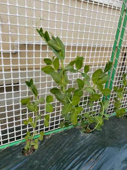 4年生が植えたスナップエンドウ豆がすくすくと育ってきています!つるがたくさん伸びてきて、水やりも頑張っています。