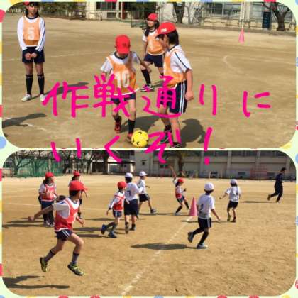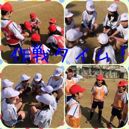 試合中、シュートを外した子に「おしいやん!もぉ少しで入るで!」と声を掛け合っている姿が何度も見られました。