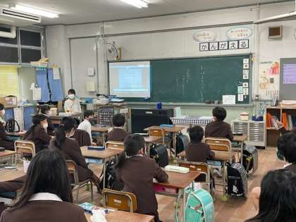 事前に給食委員会で作成した動画をみんなで見ました。動画の中では、残食が多い給食、少ない給食はどんな献立だったのかを紹介した後、残食を減らすとどんないいことがあるのかを紹介しました。