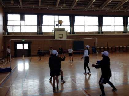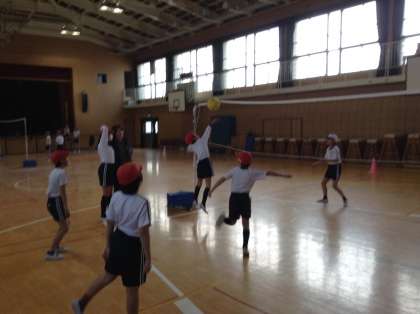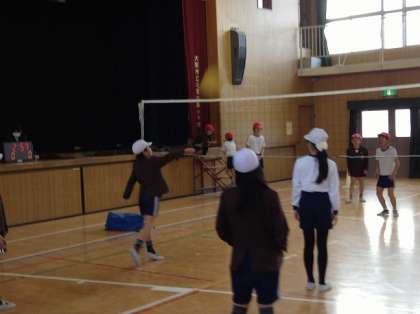 屋内スポーツクラブのようすです。今日はソフトバレーボール大会でした。4年生もアタックできるようにルールを工夫して活動していました。