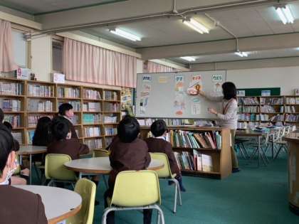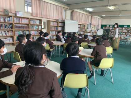 図書館補助員の先生に、アニマシオンをしていただきました。今回は、「ともだちや」の大きな絵本を使ったアニマシオンでした。読み聞かせを聞いたあと、絵本に登場した物が、どの動物の持ち物だったかの記憶クイズを行いました。「ウズラの部屋の後ろにあった気がする!!」「これはキツネの服かも!?」と大盛り上がりでした。子どもたちの記憶力に驚きです。