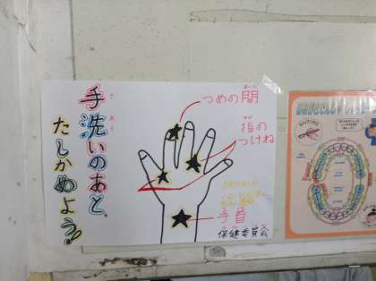 今回はいつもよりていねいに手洗いし、洗い残しがないように、しっかり行うことをめあてとしています。
