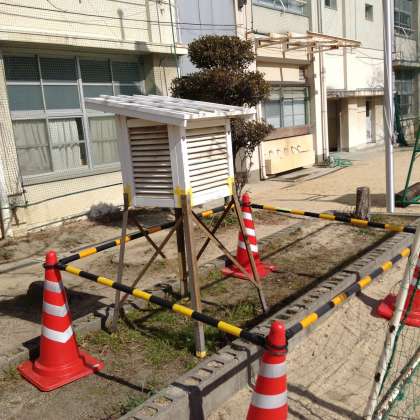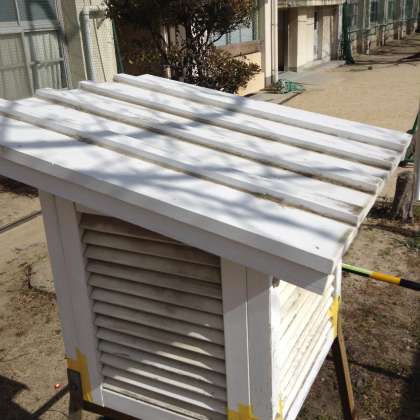 今日、横を通るとボロボロだった百葉箱が、よみがえっていました。管理作業員さんに修理をしていただき、新品同様になりました。