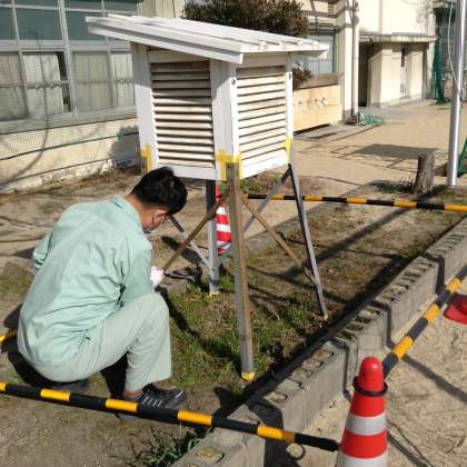 数年前から、木がボロボロになり、気になっていた百葉箱。