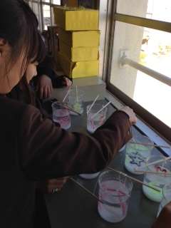 5年1組は、12月に挑戦したとき大失敗したみょうばんのかざり作りをしました。