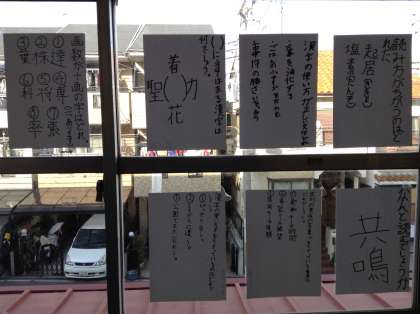 6年生の教科書では、「カンジー博士の漢字クイズ大会」という単元で出てきます。6年生の教室前にはたくさんの漢字クイズが掲示されています。