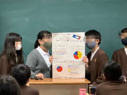 算数科の学習で帯グラフと円グラフを学習しました。そこで、自分たちでアンケートを作って集計し、グラフに表しました。そして、国語科「資料を見て考えたことを話そう」の学習をもとに原稿を考え、発表しました。結果をもとにわかったことや考えたこともしっかり話すことができました。
