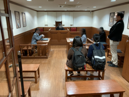 訴状を読んだり、判決を下したり、緊張感ある法廷です。