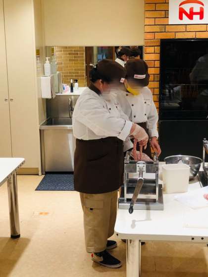 ひき肉、塩、スパイスなどの材料をうまく混ぜ合わせ、羊の腸に詰めていく本格的な方法で、上手に調理していました。