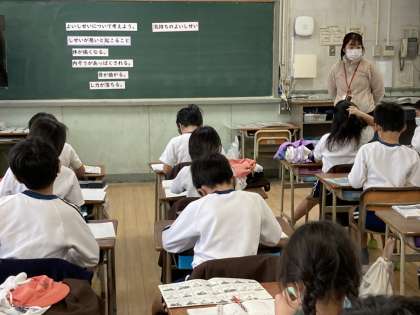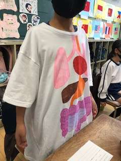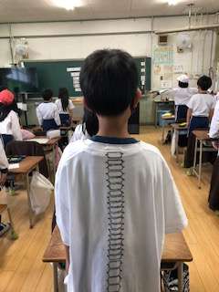 姿勢が悪いと体が痛くなったり、骨が曲がったりしてしまうことに気づくことができました。内蔵や骨を描いたTシャツを見て、悪い姿勢を直し、良い姿勢をしようと早速座り方を直していました。