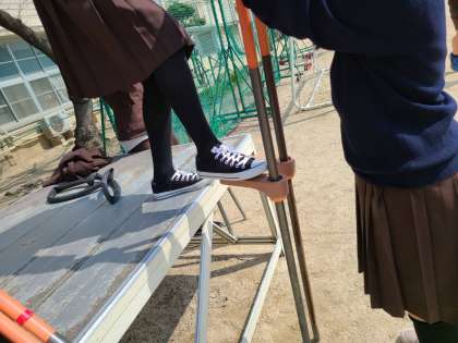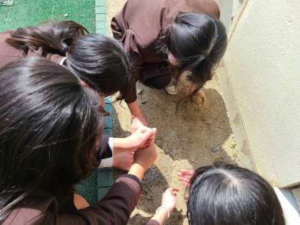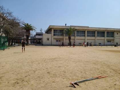 校庭に出て、レクリエーションをして緊張した体をほぐしました。