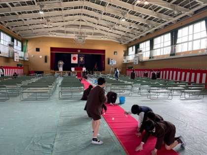 明日の卒業式のために、5年生のみんなが心を込めて、式場準備や掃除をしてくれました。