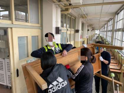 今日は、新年度に向け、学習園の畝づくりをしたり、廃校になる学校からいただいたロッカー等の設置を行いました。