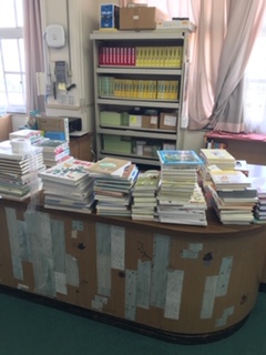 学校図書館補助員さんと学校図書館補助員コーディネーターさんを中心に蔵書点検をされています。