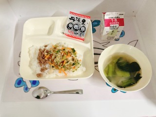 「ビビンバ」は、韓国・朝鮮の料理のひとつです。ごはんとナムルや肉などの具材を器に入れてよくかき混ぜて食べる料理です。春と秋の年2回登場しますが、春のビビンバはだいこんの代わりに切干しだいこんを使用しています。