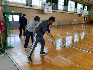 放課後に職員作業で講堂のワックスがけを行い、床がピカピカになりました。次の体育が楽しみですね!