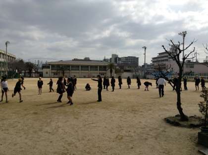 ミュージックフェアの緊張から解放され、6年生は大なわ大会にむけて?運動場で練習です。