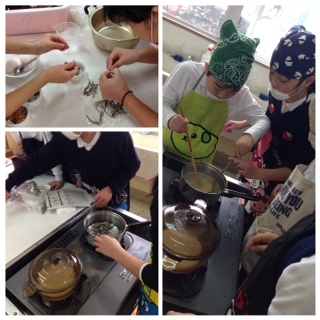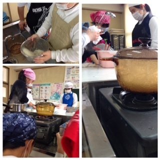 ガラスの鍋のなかで水が沸騰する様子をじっと見たり、火加減を考えたりと班のみんなと協力して作ることができていました!