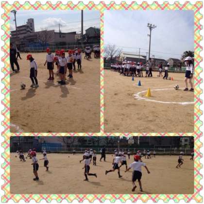 水曜日、1年生と合同で体育のサッカーをしました。1年生とペアを組んで、練習コースを回りました。パス、ドリブル、シュートなどのコツを教えたり、「いいよ!上手!」と声をかけたりしていました。1年生も2年生と一緒に練習ができて、とても楽しかったようです。