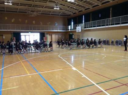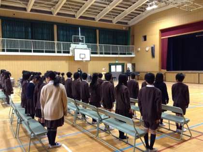 5年生が講堂にて、卒業式での座り方や立ち方の確認、別れの言葉のセリフ確認をしました。学校の代表として出席する行事ですので、立ち居振る舞いにも気をつけないといけません。