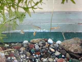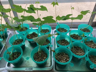 理科の学習の一環でインゲン豆とメダカを育てています。インゲン豆は、種から植えて約2週間、少しずつ成長したのがよくわかります。メダカは、毎日元気よく水槽の中を泳いでいます。