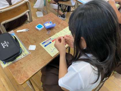 玉結び・玉止めにチャレンジしました。友だちと教えあいながら、もくもくと取り組むことができました。