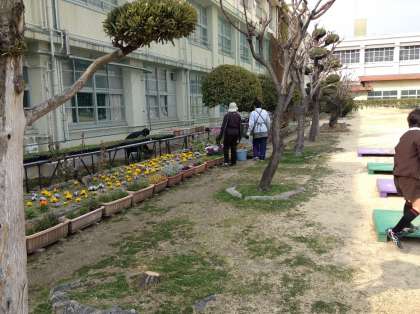 グリーンサポート隊の方々に、花壇の植え替え・草抜きをしていただきました。