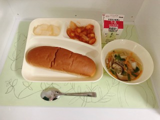 「中華スープ」は、主材に焼き豚を使用し、しいたけで旨みを出し、にらとたけのこで中華らしさを出したスープです。