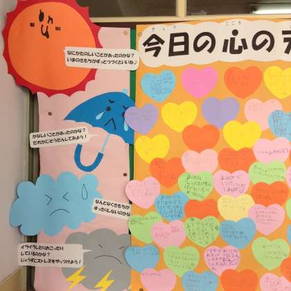 保健室の掲示板に、『今日の心の天気は?』という掲示物がありました。