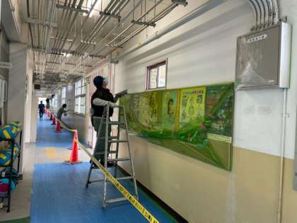 北恩加島小学校では、いろいろなところを新しくきれいにしています。