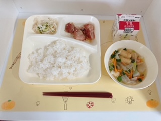 「鶏肉のしょうゆマヨネーズ焼き」は、鶏肉に料理酒、塩、こいくちしょうゆ、マヨネーズで下味をつけ、焼き物機で焼きます。