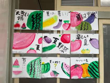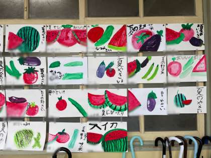 4年生の夏野菜の作品です。とっても鮮やかな色使いですね。