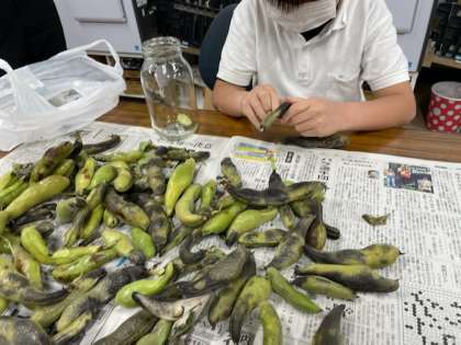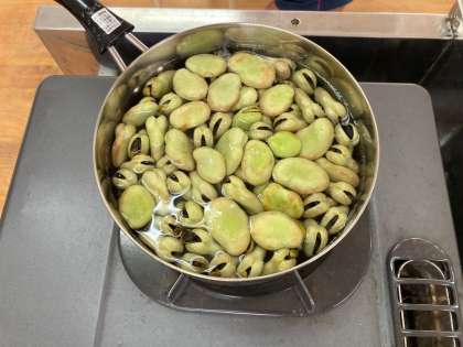 きたおかファームで、大きなそら豆がとれました。その大きなそら豆をつかって、「トウバンジャン」を作ることになりました。