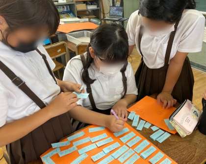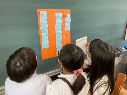 作り方の手順を一つ一つ付箋に書き、グループのみんなで相談しながら、カレー作りをイメージすることができました。