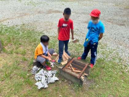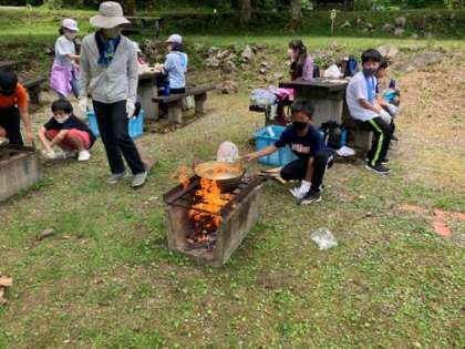 みんなで協力して、カレー作りをしました。火をおこすところから、もう大変!!