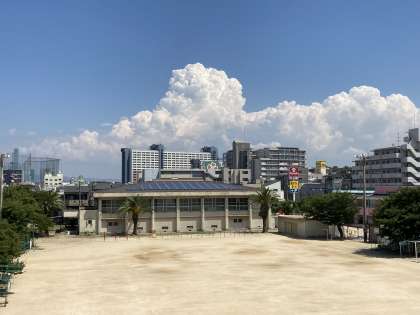 今日は、積雲が見られました。積雲とは、上昇気流によってできた雲のことです。積雲は、本日のような天気の良い日に発生する写真のようなもくもくとした雲です。わた雲とも呼ばれています。積雲は上昇気流があるところにできるので、上の方に向かって大きくなっていきます。