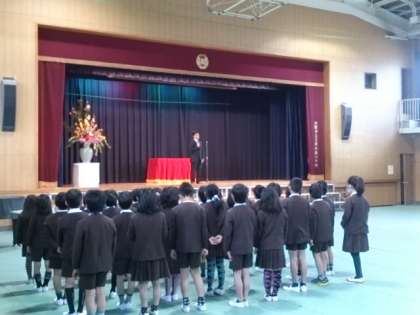 そして始業式、校長先生から3つのことをがんばってほしいと、子どもたちに伝えられえました。1つ目「思いやりのある子たくましい子」、2つ目「良いこと悪いことが分かり助け合う子」、3つ目「粘り強く最後までやりぬく子」。そんな子どもに育ってほしいというメッセージを子どもたちは真剣な表情で聴いていました。