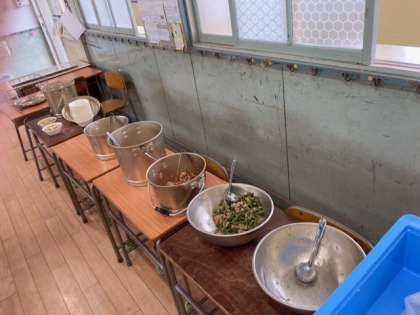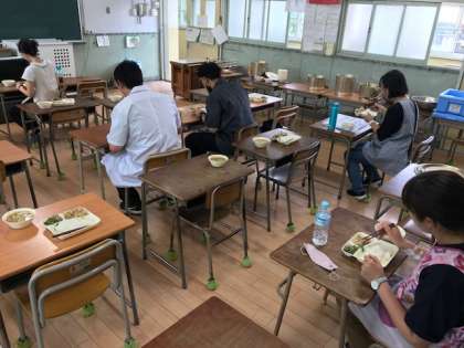 2学期から給食調理員さんが変わるので、給食の試食会を実施しました。本校の教職員と大正北中学の教職員の方で実施しました。