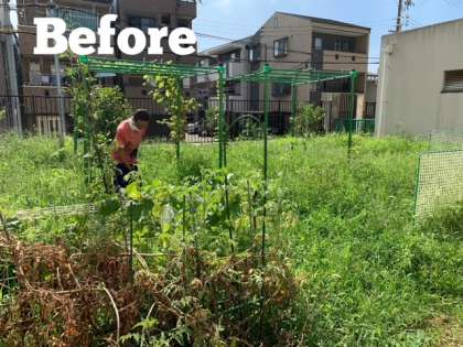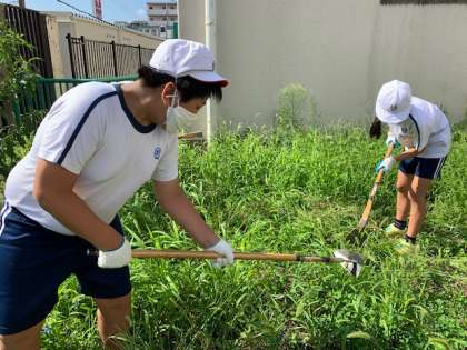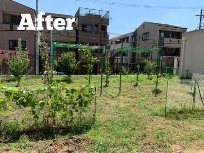 鍬を使って、フルーツパークの雑草をぬきました。さすが6年生!鍬の使い方は、ばっちりです。作業前後で比べると、とてもきれいになったのがわかります。フルーツがぐんぐん育ちますように♪