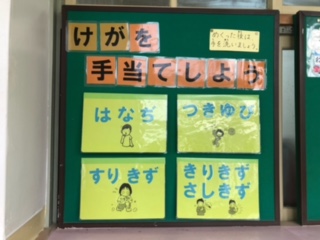 保健室前にも、けがの手当てにについて掲示しているので、おさらいしてくださいね。