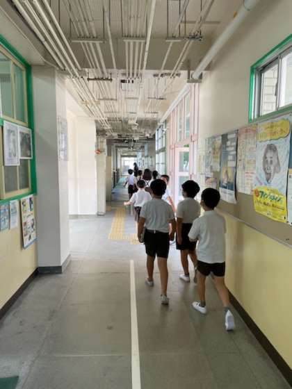 本校は、校舎が広く、長い長いまっすぐの廊下があります。子ども達にとってとても魅力的で、ついつい走ってしまいます。