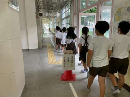 子ども達は、中央線を気にしながら、ろうかを歩くようになってきました。