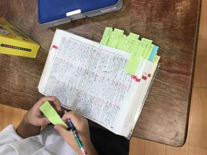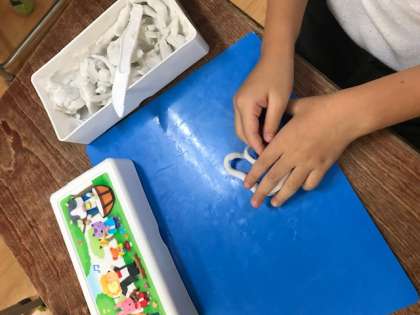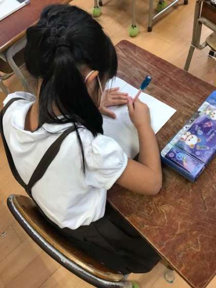 雨の日の休み時間は、粘土をしたり、お絵描きをしたり、辞書を引いて出てきたカタカナを付箋で貼ったりして過ごしています。教室の中で密にならないよう、一人ひとりが自分の席でできることを工夫しながら楽しく過ごしています。