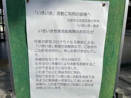 児童の新型コロナウイルス感染による、「いきいき」教室の活動休止で、ご迷惑やご心配をおかけしました。