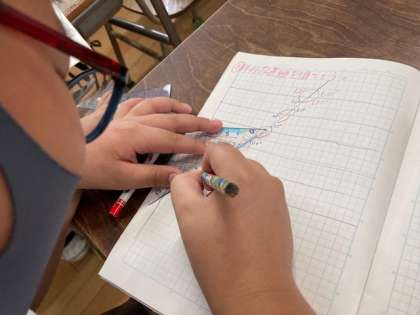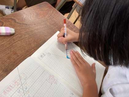 4年生の算数では、三角定規をつかって、垂直と並行の学習をしています。みんな丁寧に描けていました。この後は、平行四辺形や台形の学習につながっていきます。