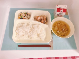 「五目汁」は、キャベツ、たまねぎ、たけのこ、えのきたけ、青みに青ねぎを使用した、具だくさんの汁ものです。