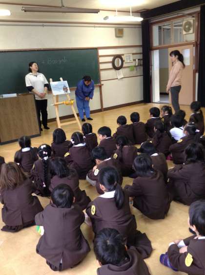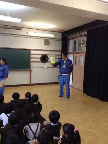 大正区役所からツージィ隊の人が来てくださり、安全な登下校について話をしてくれました。