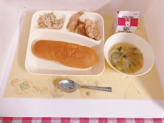 「鶏肉のからあげ」は、鶏肉に、にんにく、しょうが汁、塩、こしょうで下味をつけ、でん粉をまぶし、なたね油で揚げます。